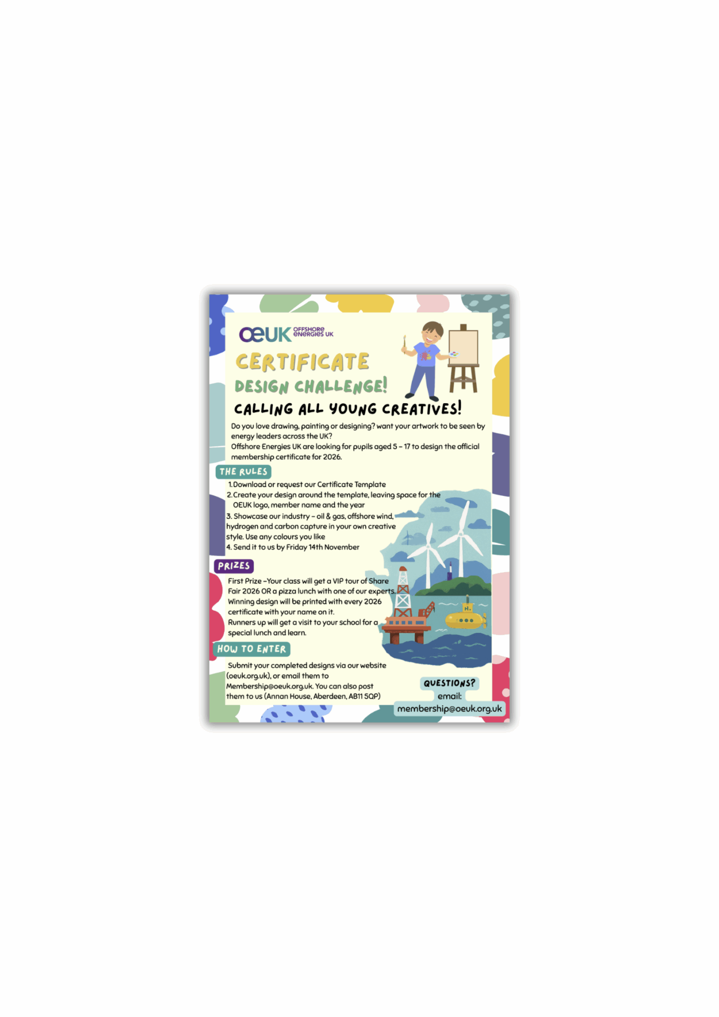 We’re inviting pupils of all school ages to get creative and design the new Offshore Energies UK member certificate.
